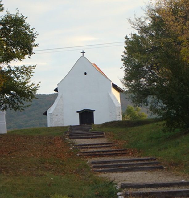 1198-ban Miksa bán megalapította a Telki Apátságot és az Árpád-korban Jenő ehhez a Telki központú bencés rendhez tartozott. Feltevések szerint az Öregtemplom, egy korábbi XII. századi félköríves templom romjaira épült, gótikus stílusban a XIV. században. Okiratokban először 1378-ban szerepel, Szent Mihály templomként. A kápolna puritán egyszerűségében is megkapó. Nyugatra néző főhomlokzata oromzatos, a keleti homlokzatot a szentélyfal és a sekrestye keleti fala alkotja. A kápolna az egykori település középponti részén állhatott, a közelében lehetett valaha a kegyúr kúriája.